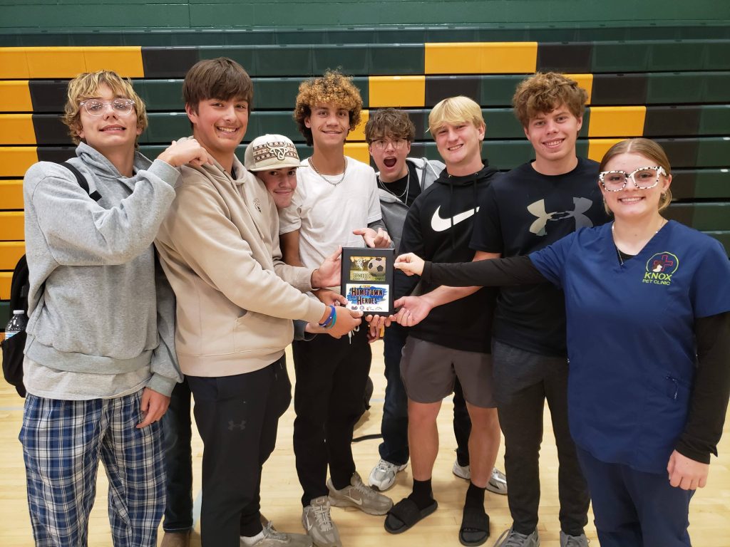 We will meet with the team to present the Blue Bullets with a plaque in their honor for the trophy case, each of the team members will receive a Hometown Heroes t-shirt from Go Van Gogh’s, and the team now advances for a chance to win $1,000 for their high school’s athletic department when we wrap up the fall sports season!