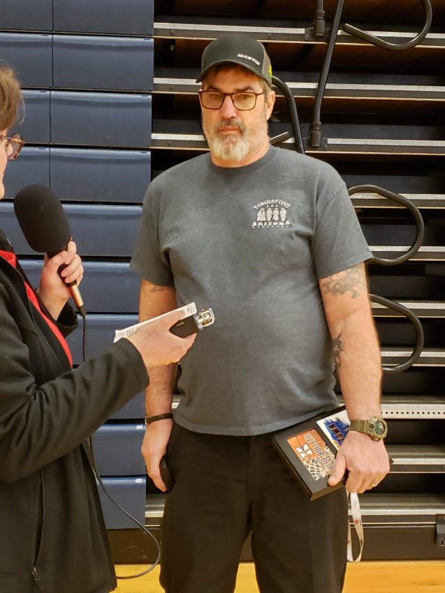 We met up with the team to present the Blue Bullets with a plaque in their honor for the trophy case, each of the team members received a Hometown Heroes t-shirt from Go Van Gogh’s, and the team now advances for a chance to win $1,000 for their high school’s athletic department when we wrap up the winter sports season!